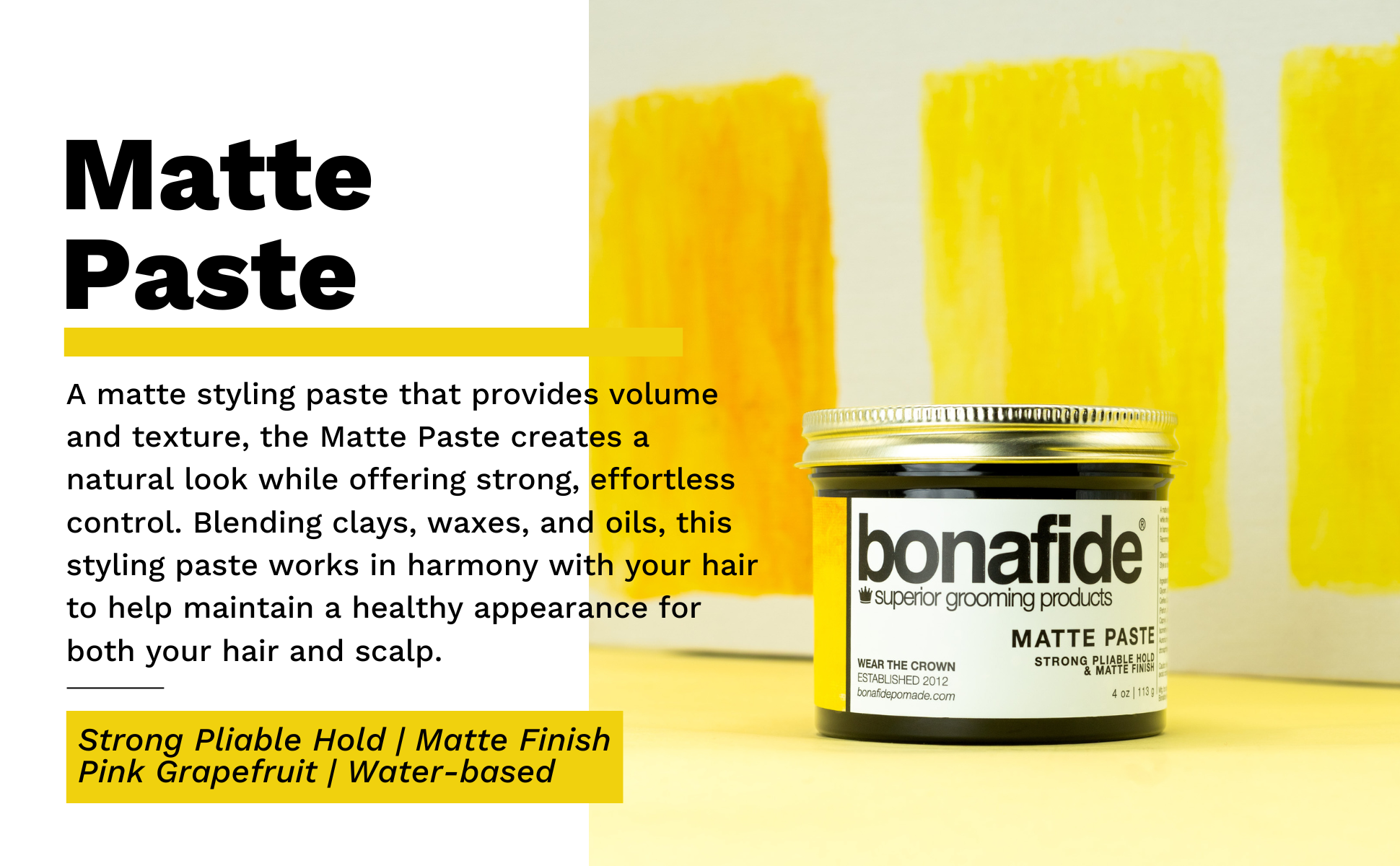 The new Matte Paste is an improved version of our 2015 formula. It's infused with clays, oils and waxes that help improve hair and scalp appearance. It is now more pliable than our original formula and is better suited for modern styles.