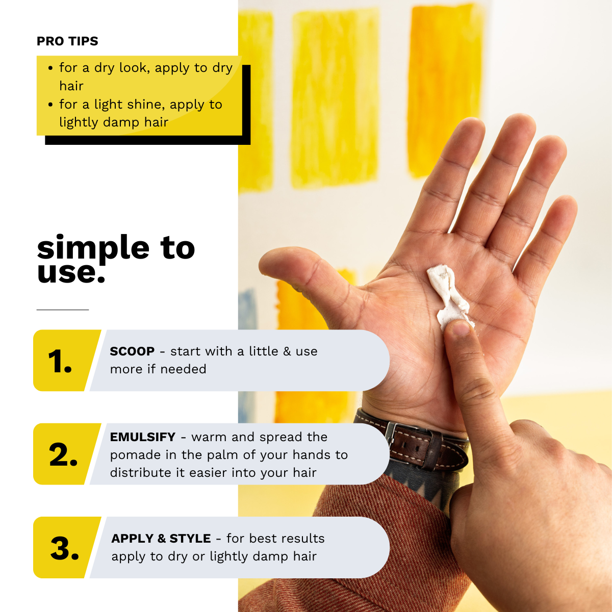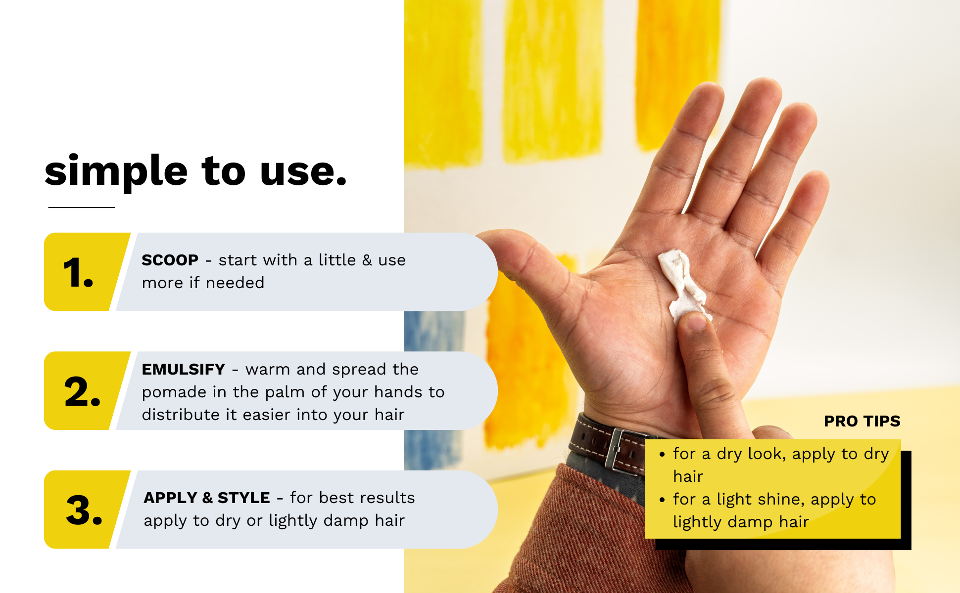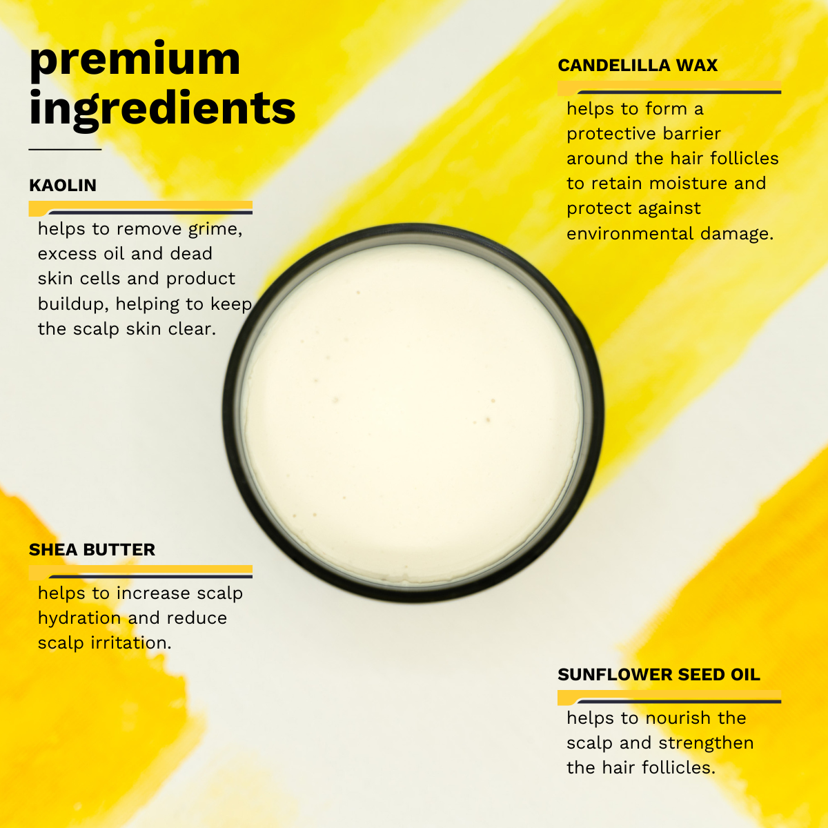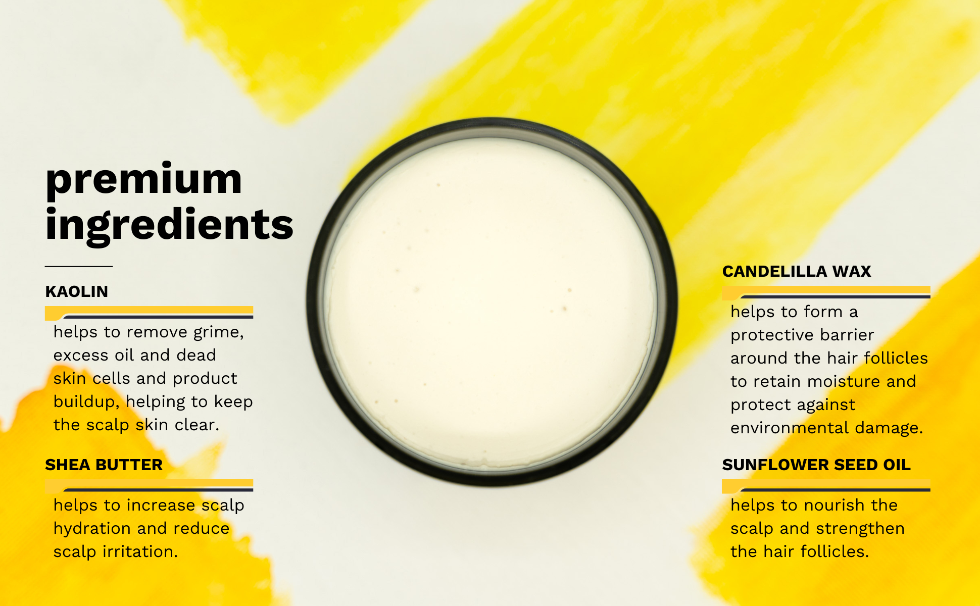 1. We've upgraded the quality of ingredients, infusing it with oils, clays and waxes that are good for your hair and scalp.