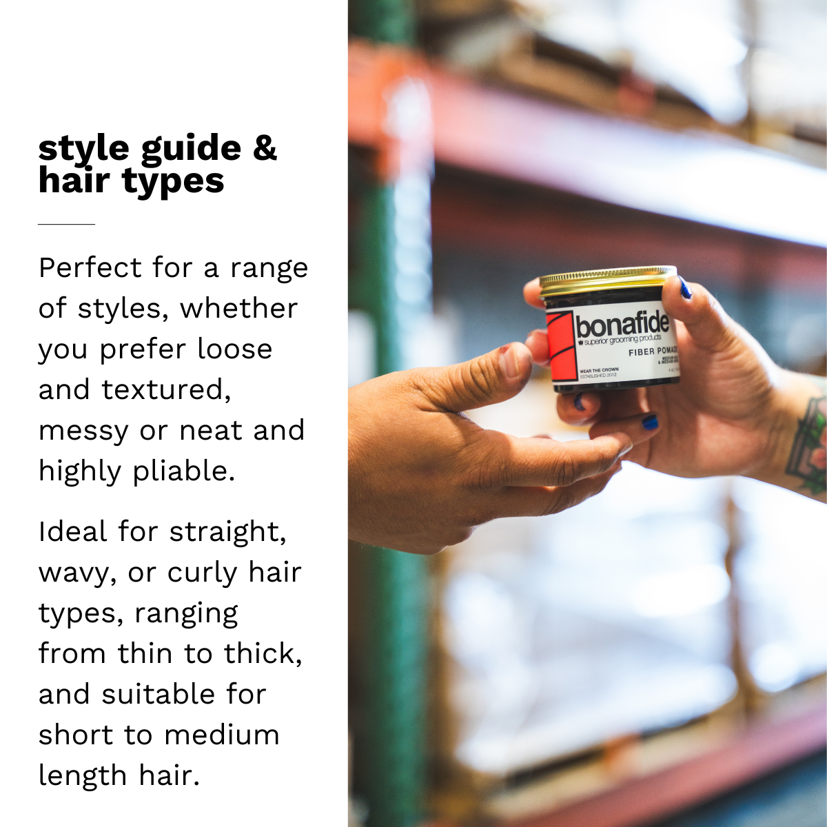 Fiber Pomades are typically water-based styling products that are pliable and texturizing. They can be used to create messy and choppy looks.