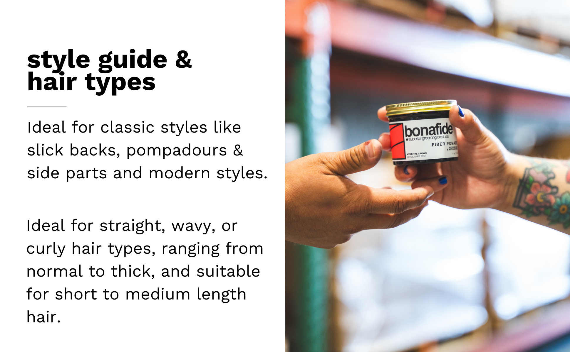 Essentially, put all the styles you can think of for short to medium length hair (of all types and textures) on a board and throw a dart at it. Wherever you land, you can achieve it with Fiber Pomade.