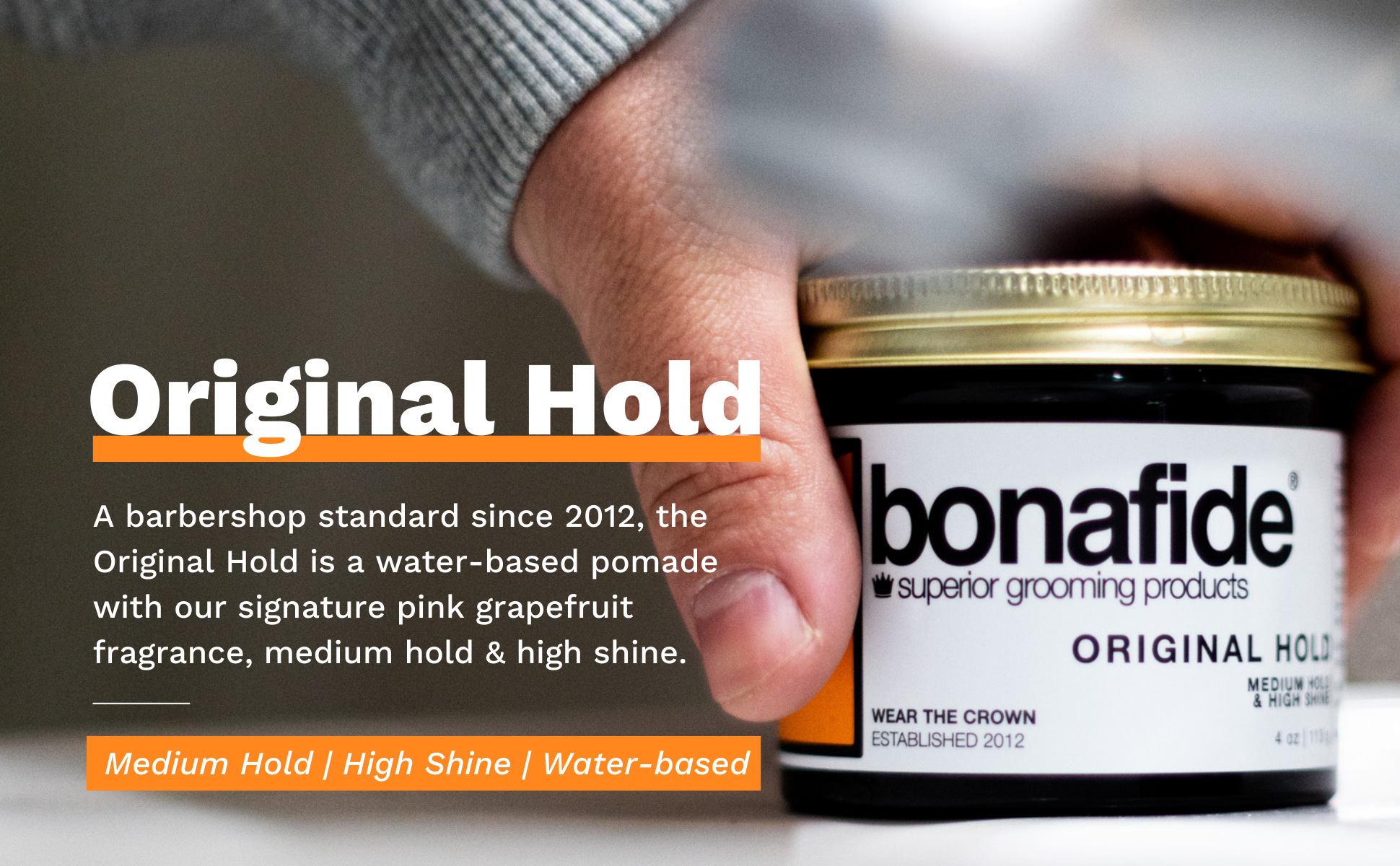 A barbershop standard since 2012, the Original Hold is a water-based pomade with our signature citrus fragrance, medium hold and high shine.