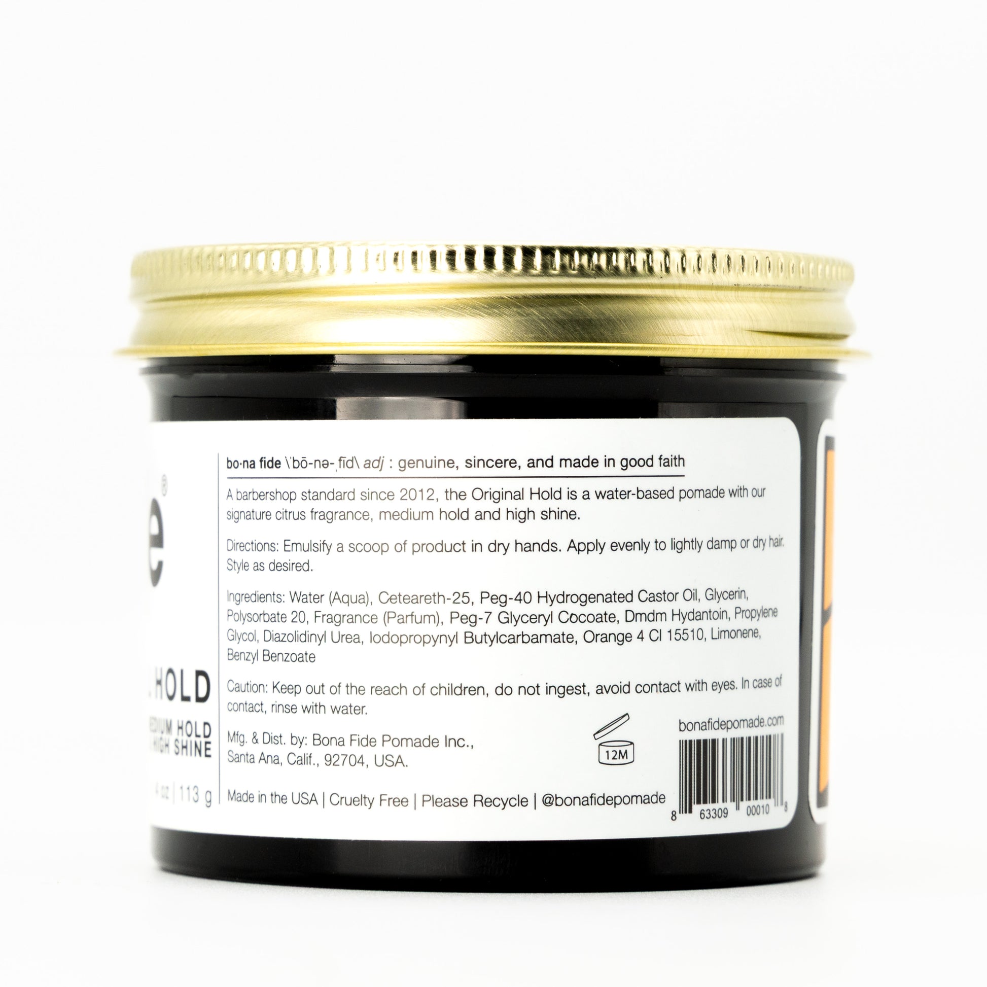 A barbershop standard since 2012, the Original Hold is a water-based pomade with our signature citrus fragrance, medium hold and high shine.