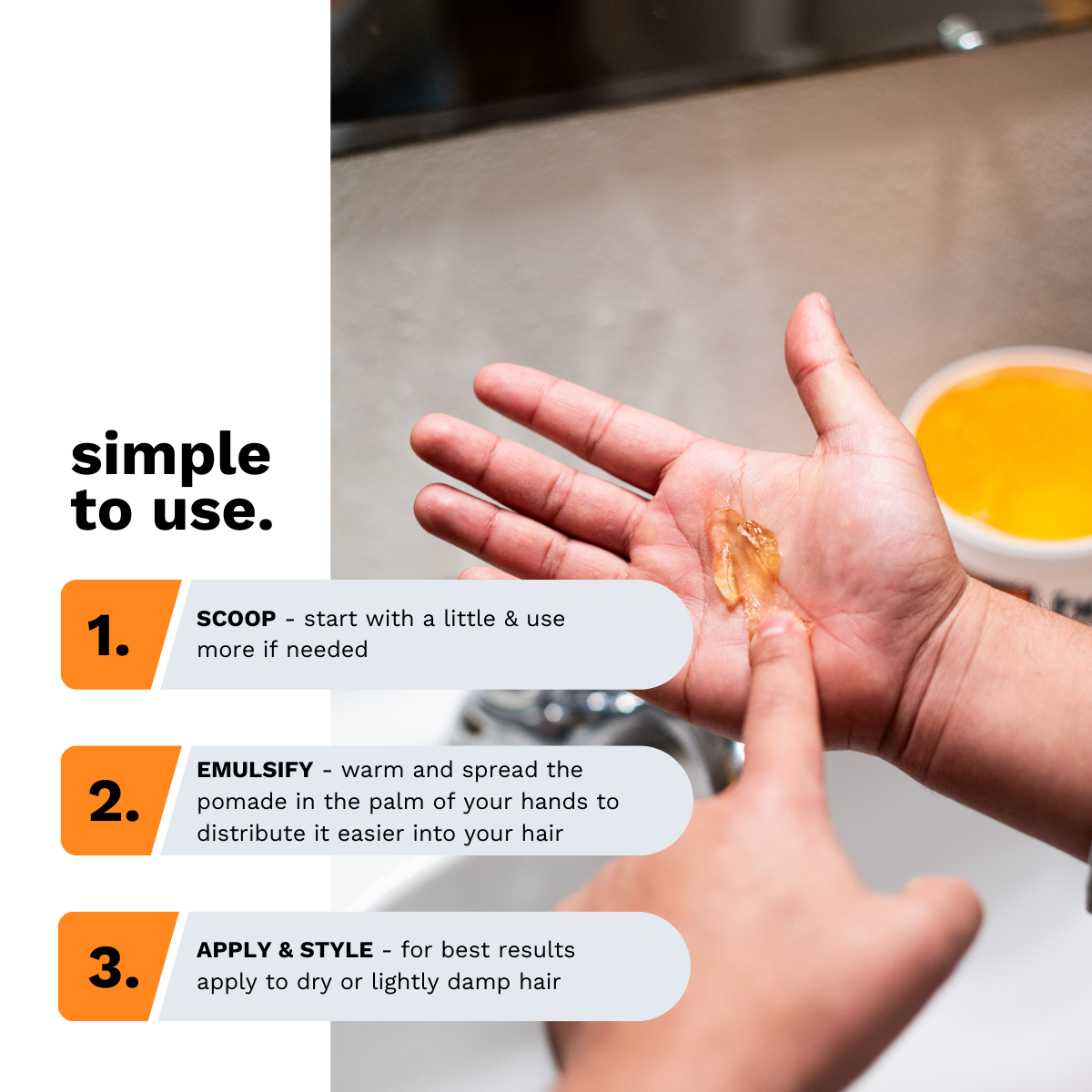 PRO Tip: If you need maximum hold from this product apply to dry hair, but make sure to warm the product between the palm of your hands thoroughly to make sure it spreads and combs easily.